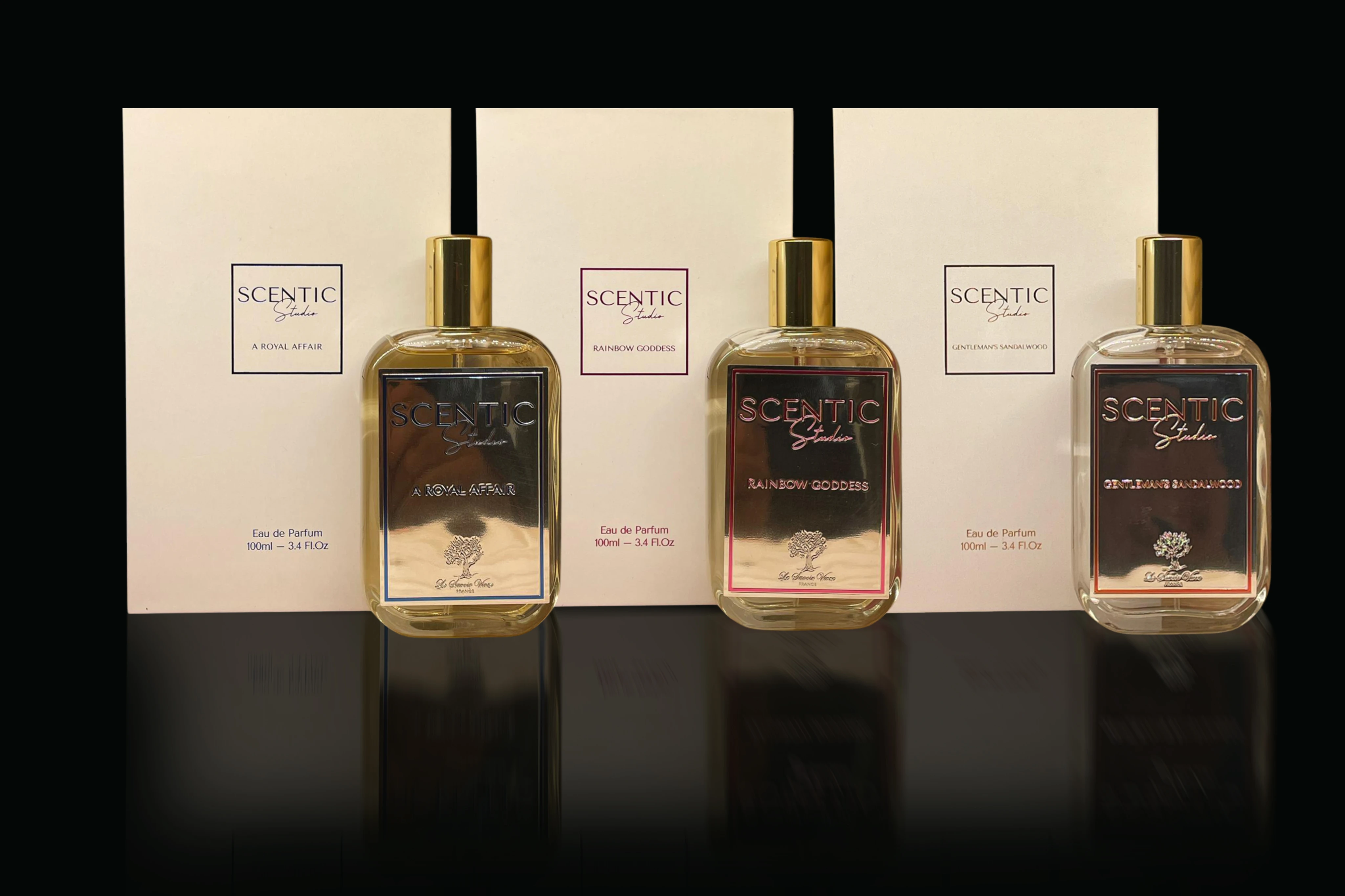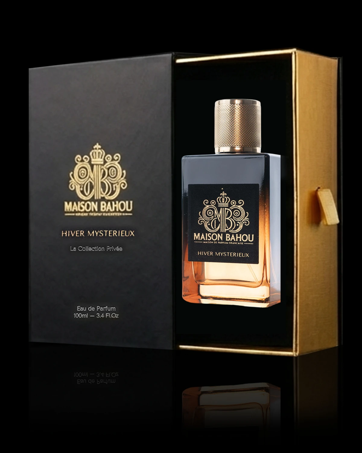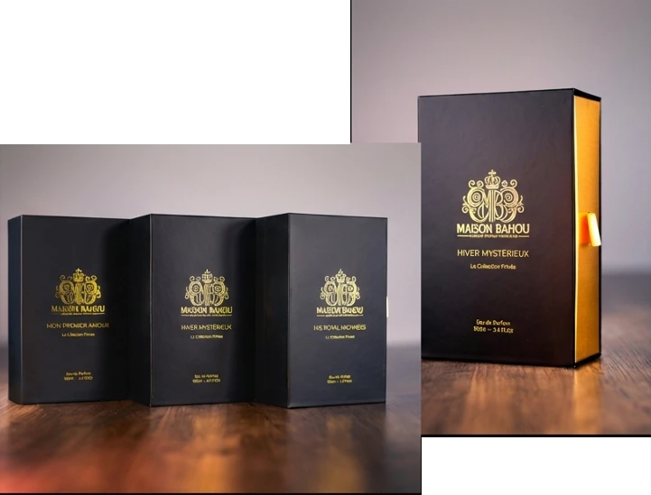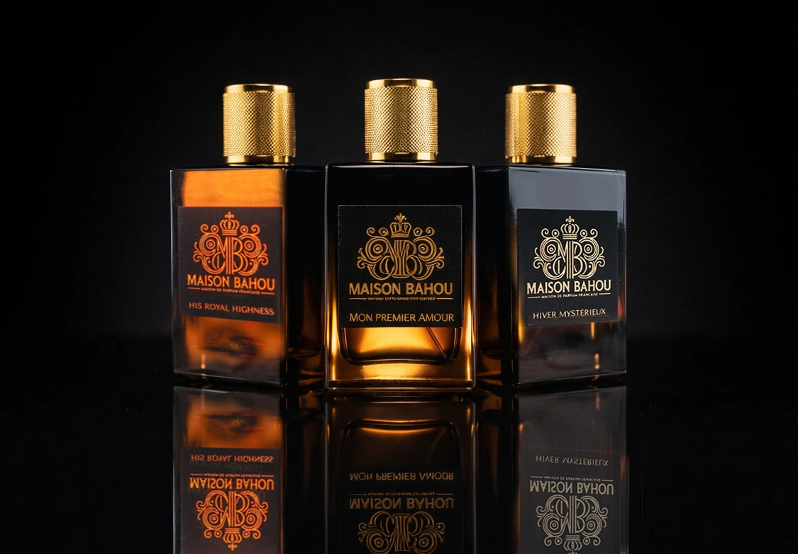 Heavy glass, metallic accents, and Haute Parfumerie branding that commands shelf presence.